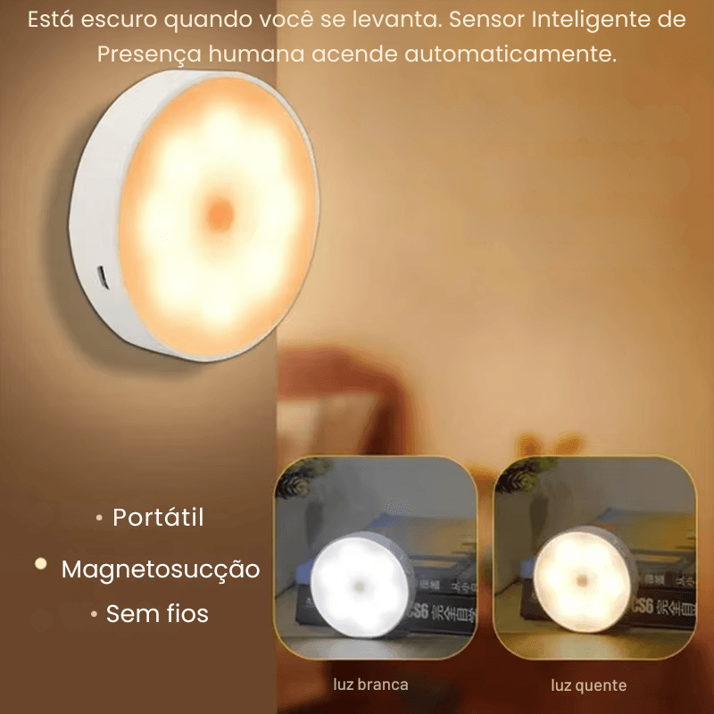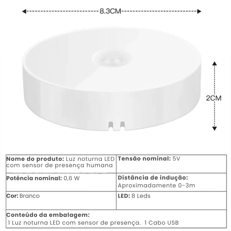 Luz Noturna de Indução do Corpo Humano LED (1 unidade): A luz redonda com o sensor de movimento PIR.